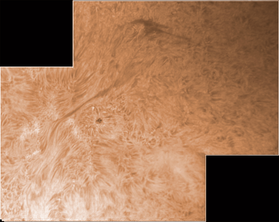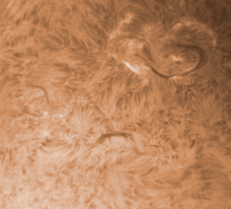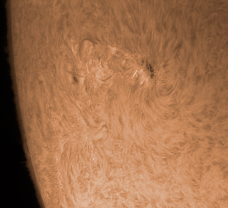 heute mittag war das Seeing zwar nicht perfekt, und kleine Ungereimtheiten in der Nachführung mit der Superpolaris mussten auch erst beseitigt werden. Trotzdem ist der Versuch mit 2000mm Brennweite geglückt: