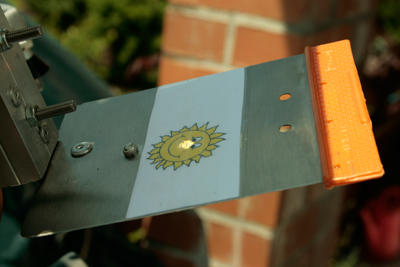 Die Basis ist ein Aluprofil, 1,5mm stark. In die Basis wurden zwei Winkel eingenietet. Die Schattenblende und der Sichtschirm bestehen aus zwei Malerspachteln, die mit der Flex etwas „entschärft“ wurden.